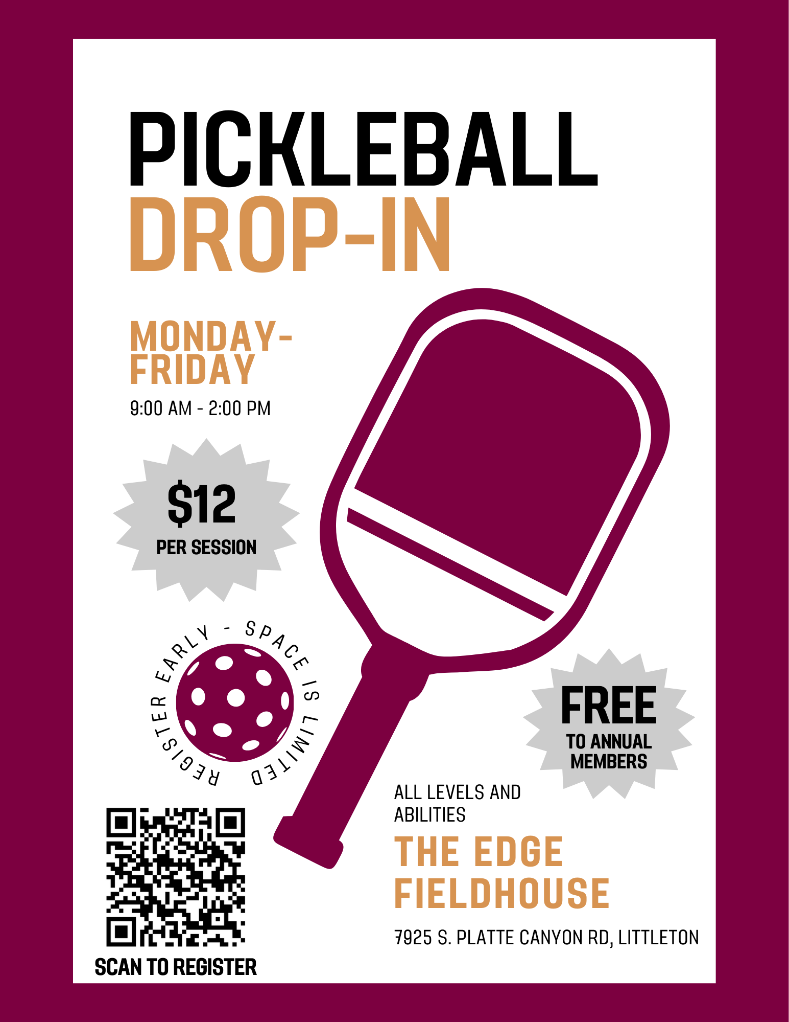 Registration is now open for our Pickleball Drop-In sessions and the Pickleball Annual Membership. Whether you’re looking for flexible, pay-as-you-play access or year-round court time and perks, both options are easy to sign up for using the QR codes provided. Choose the option that fits your schedule and start playing at The Edge.